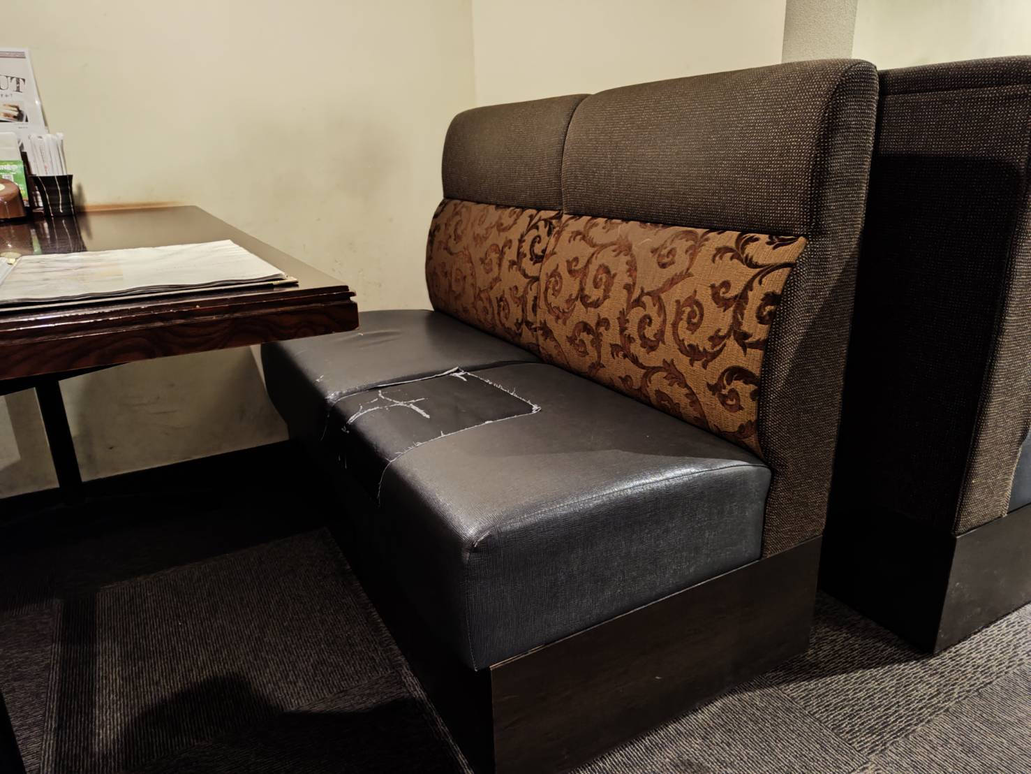 今回は、みよし市のとあるカフェの、ソファ席の座面着せかえの事例紹介です。