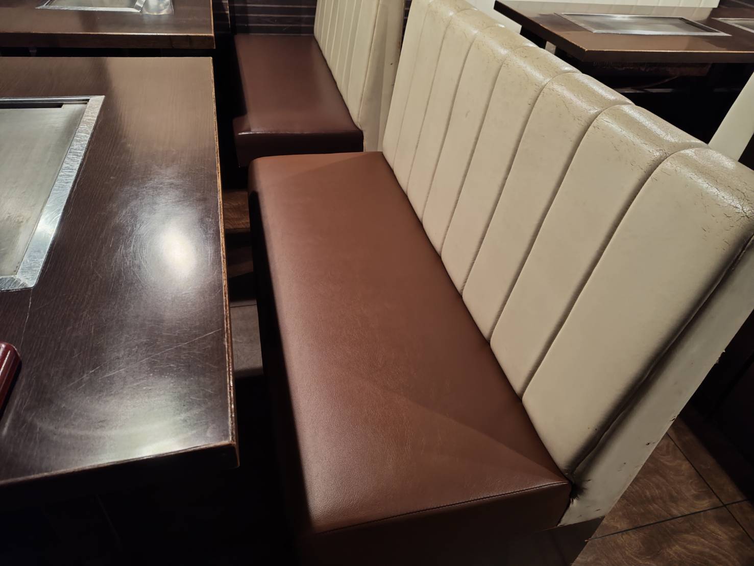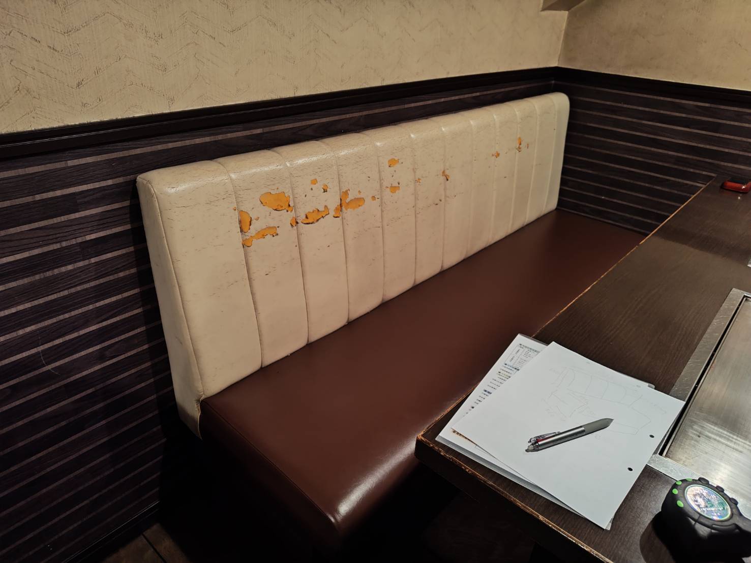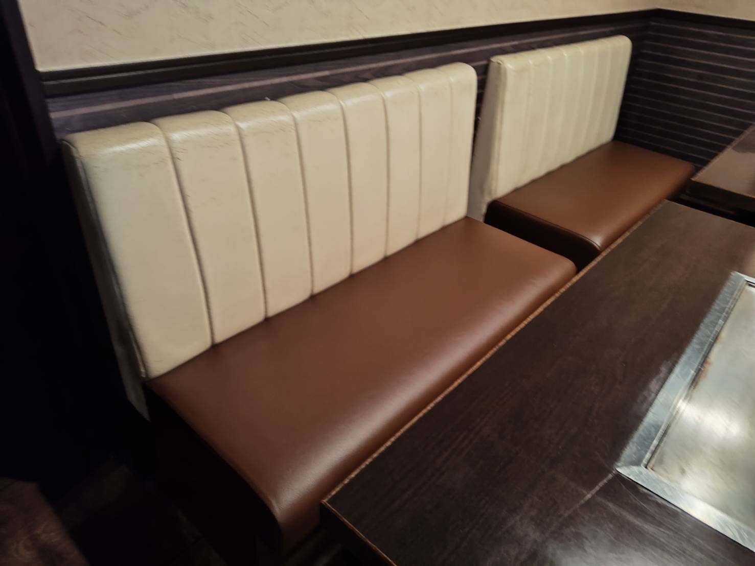 今回は、岡崎市にある「鉄板焼き ZIPANG」様のBOXソファ張替事例のご紹介です。