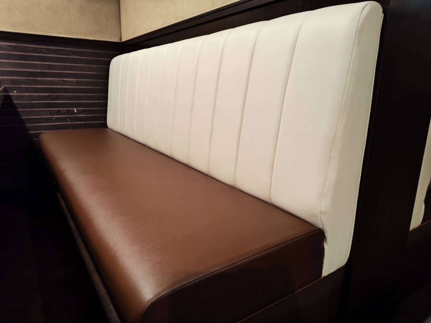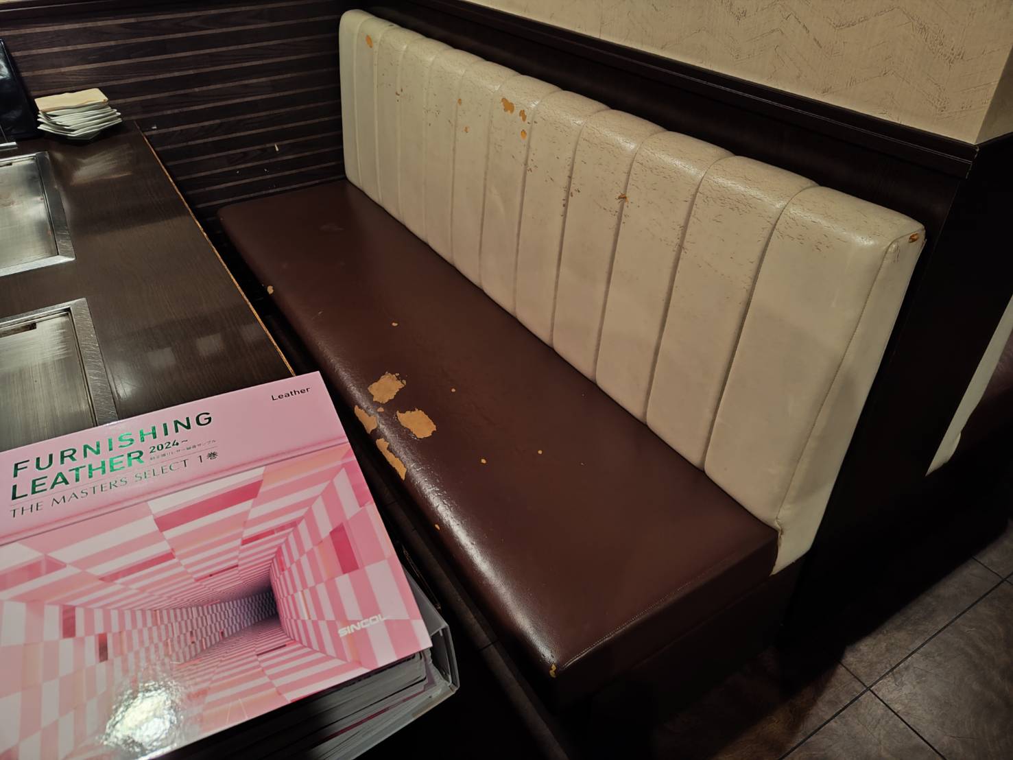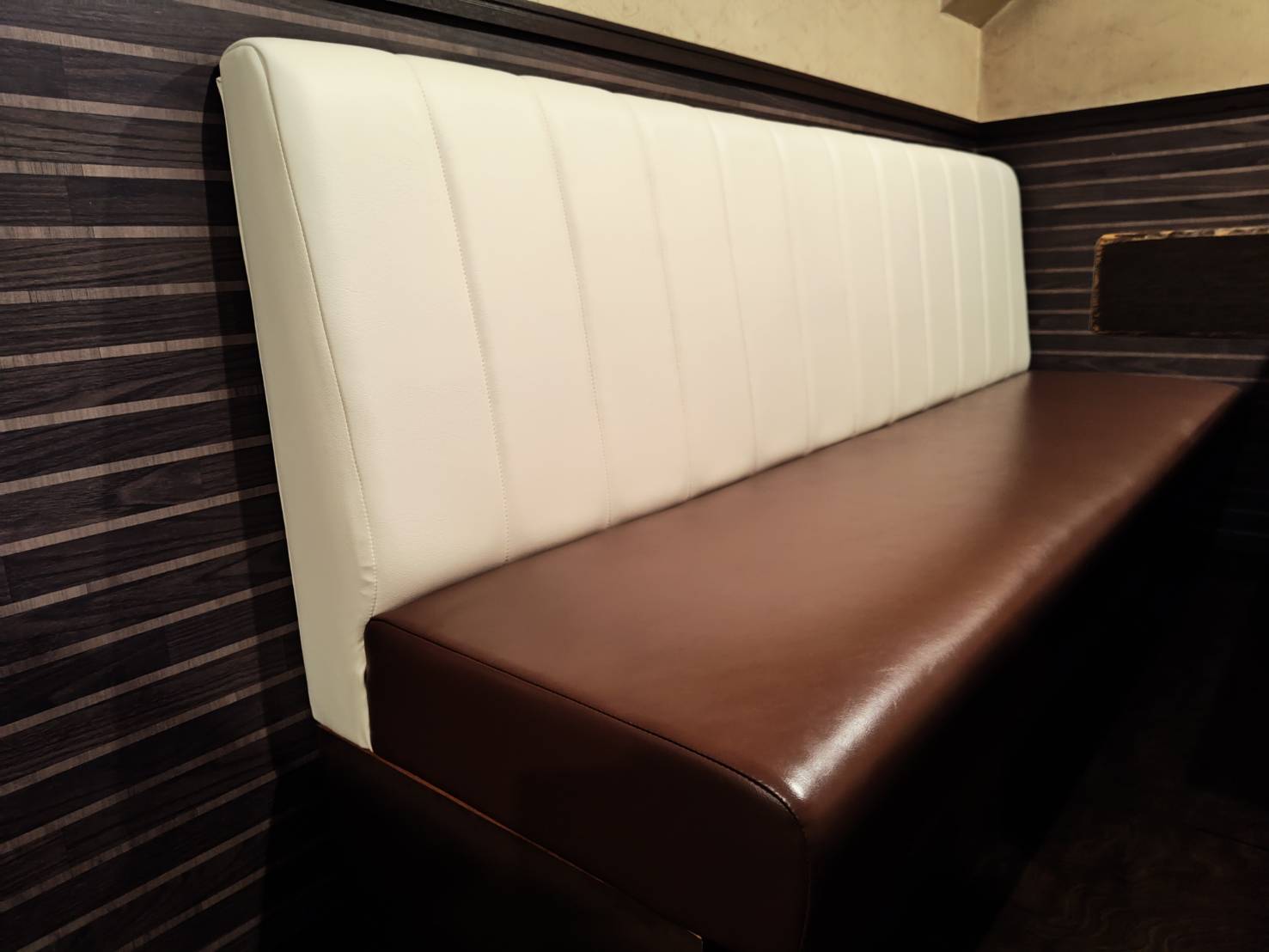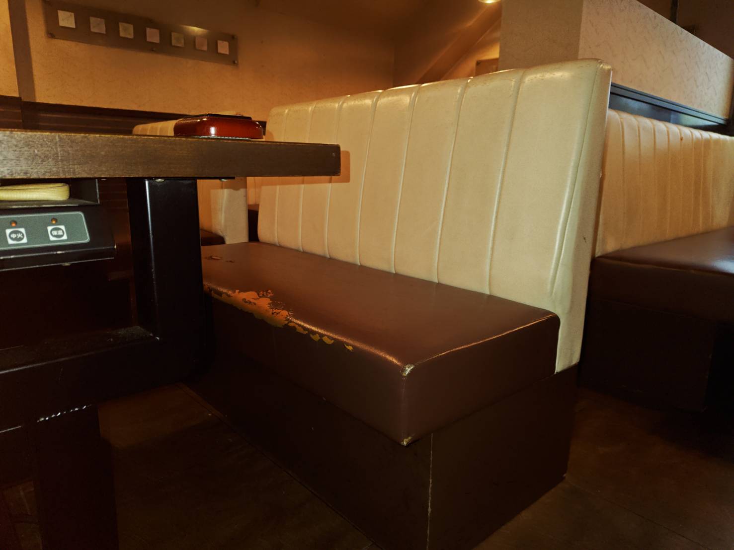 今回は、岡崎市にある「鉄板焼き ZIPANG」様のBOXソファ張替事例のご紹介です。