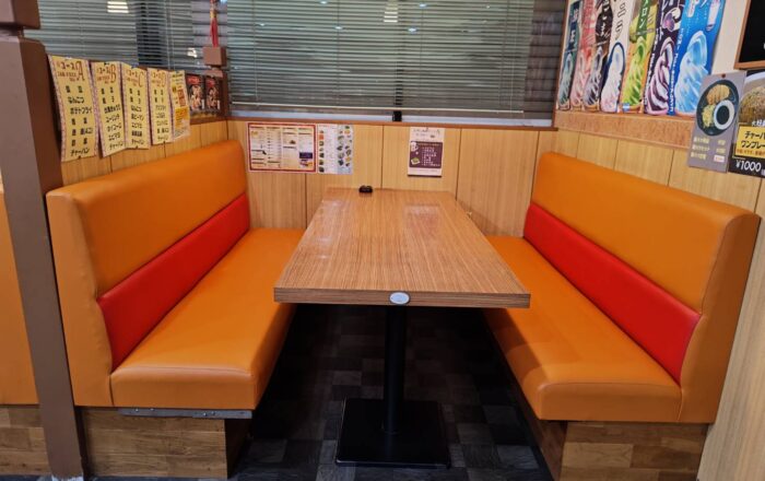 今回は西尾市にある中華料理店様の対面ボックスソファの着せかえを行いました。