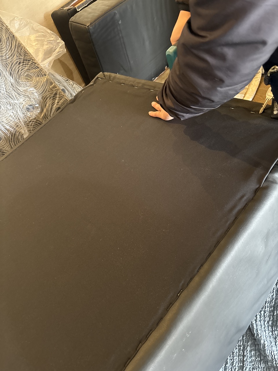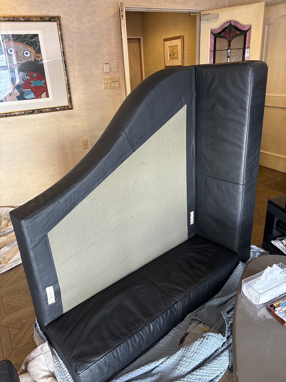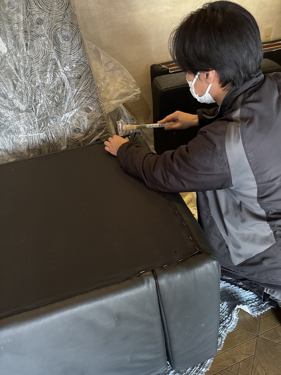 今回、お客様から大型ソファの張替のお仕事を頂き、納品させて頂きました。