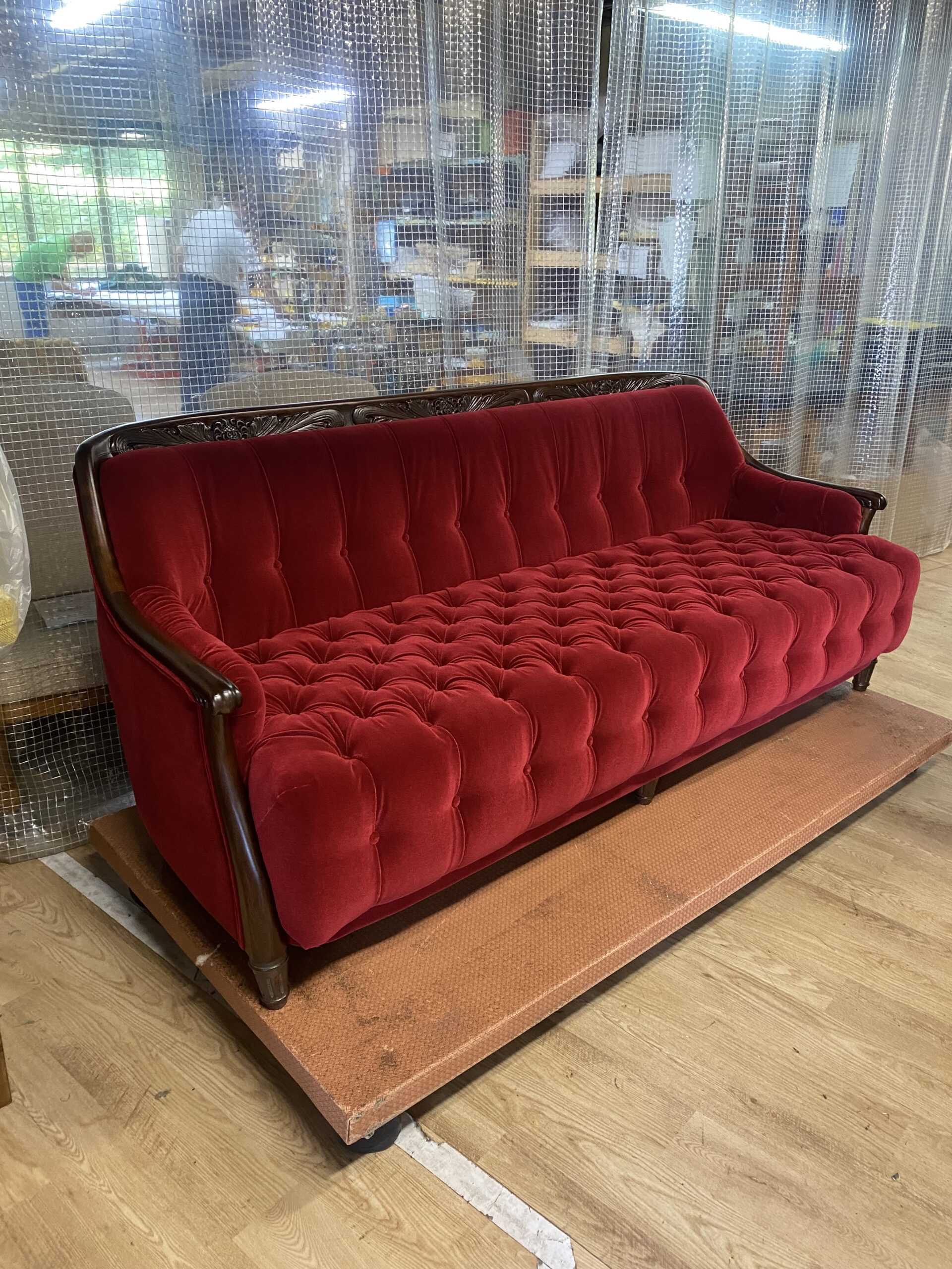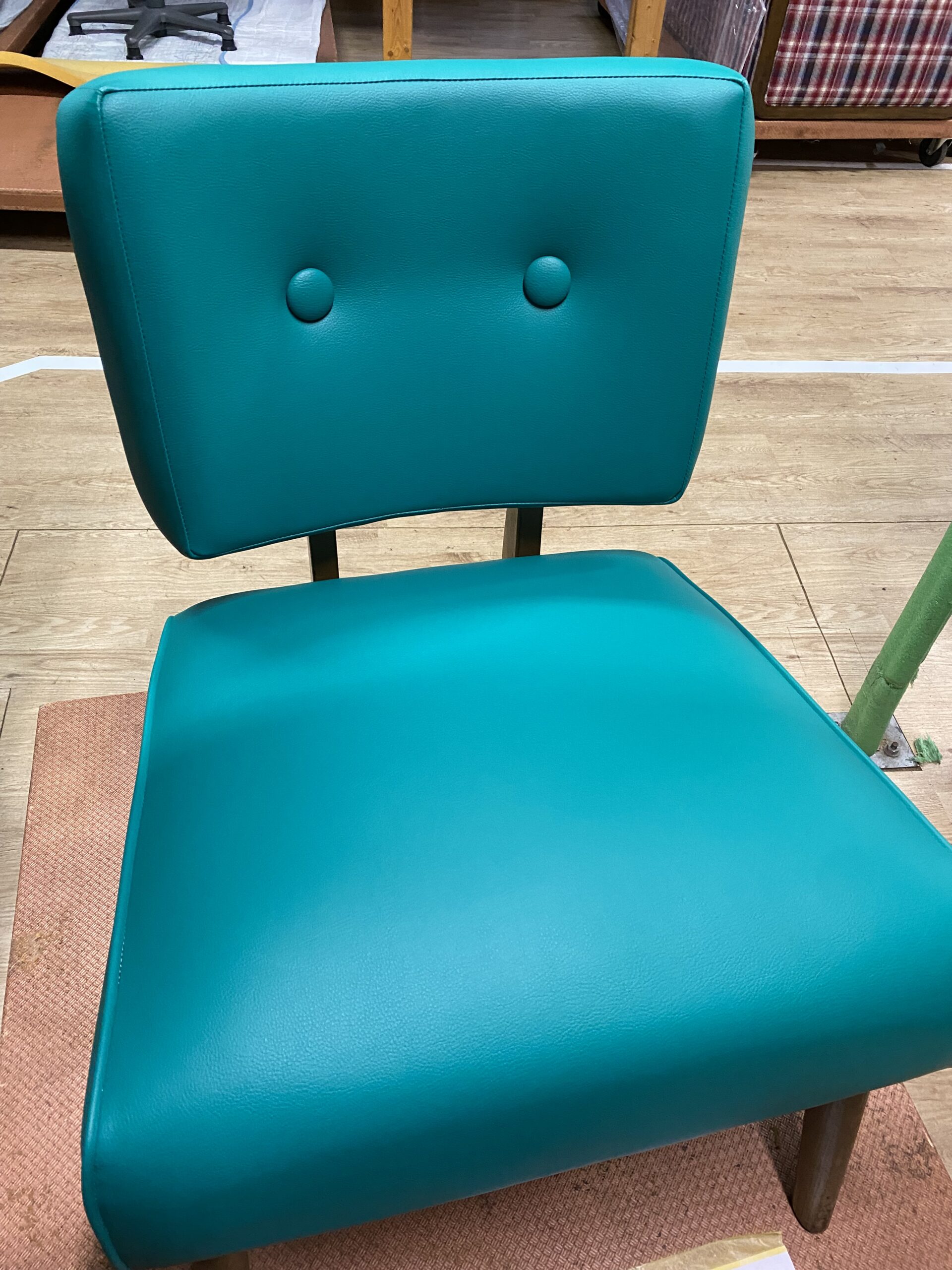 こちらのボタンは、通常サイズよりも大きく直径40ミリほどあり、イスの色合いとデザインにとてもマッチして素敵な仕上がりになりました!
