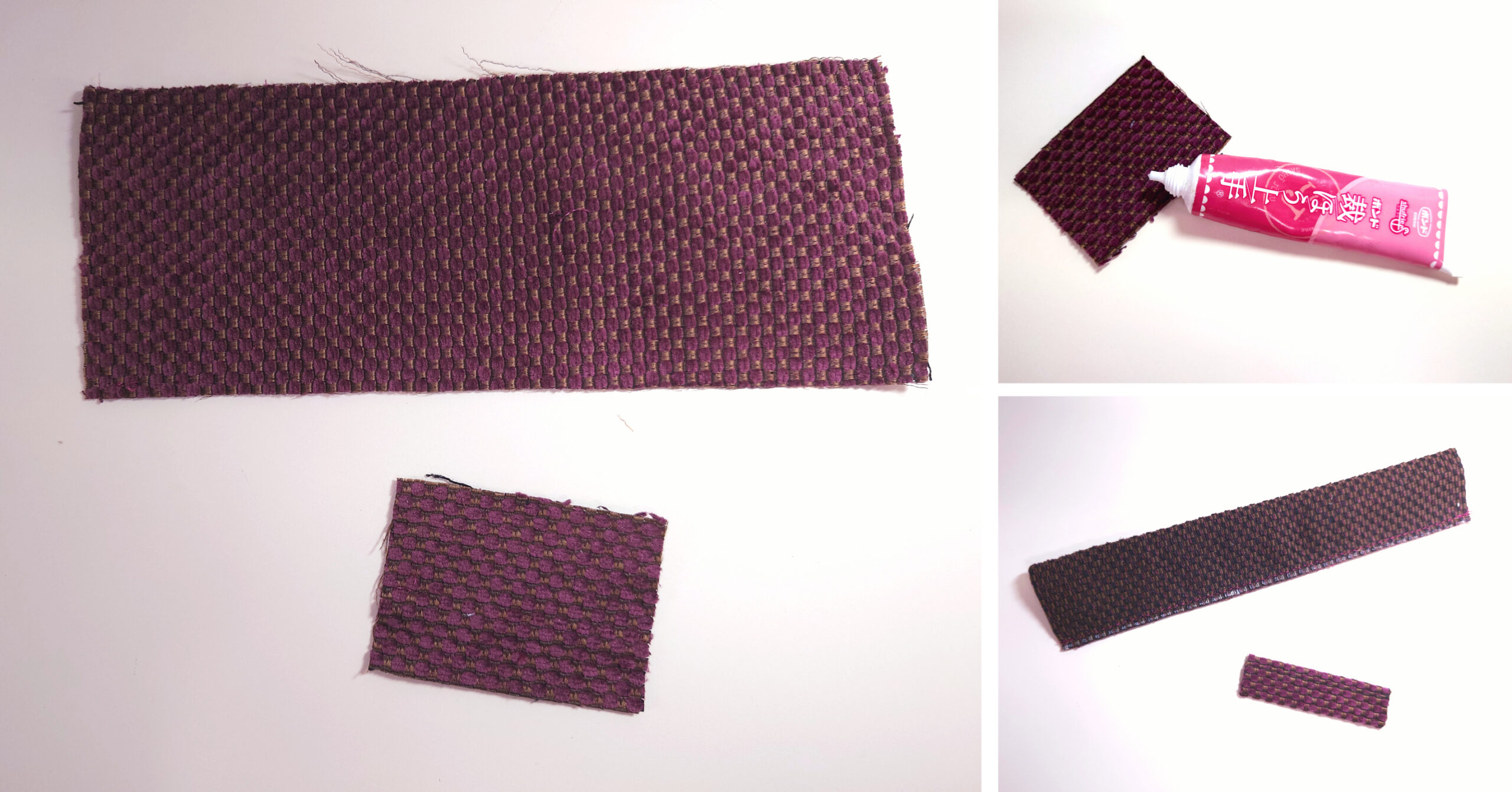 それぞれパーツを裁断し、縫い合わせたり細かい部分は布用ボンドで接着していきます。
