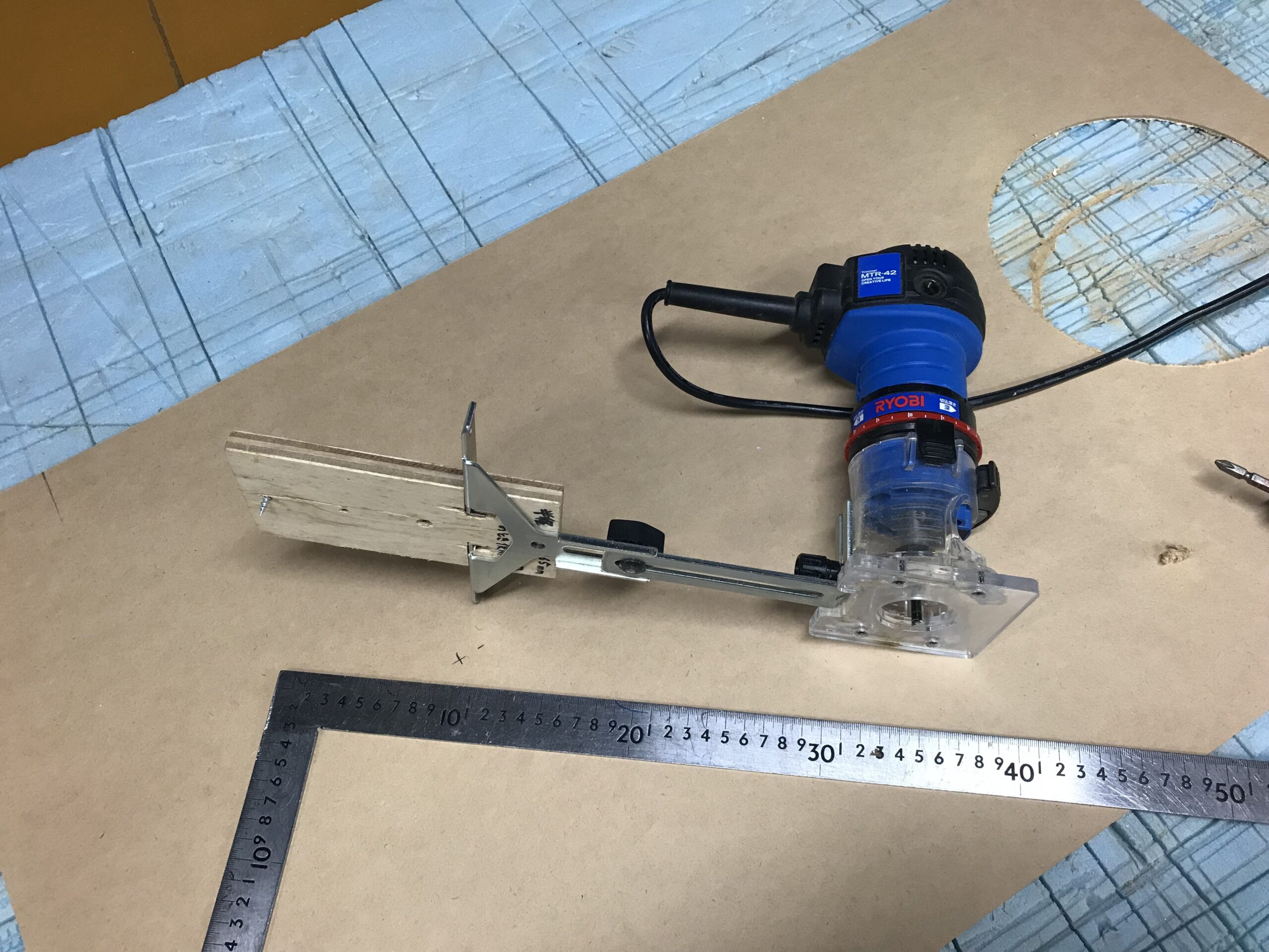 これを使えば直径70cmまでの真円を切り出すことができるので椅子の座面用としては必要十分です。