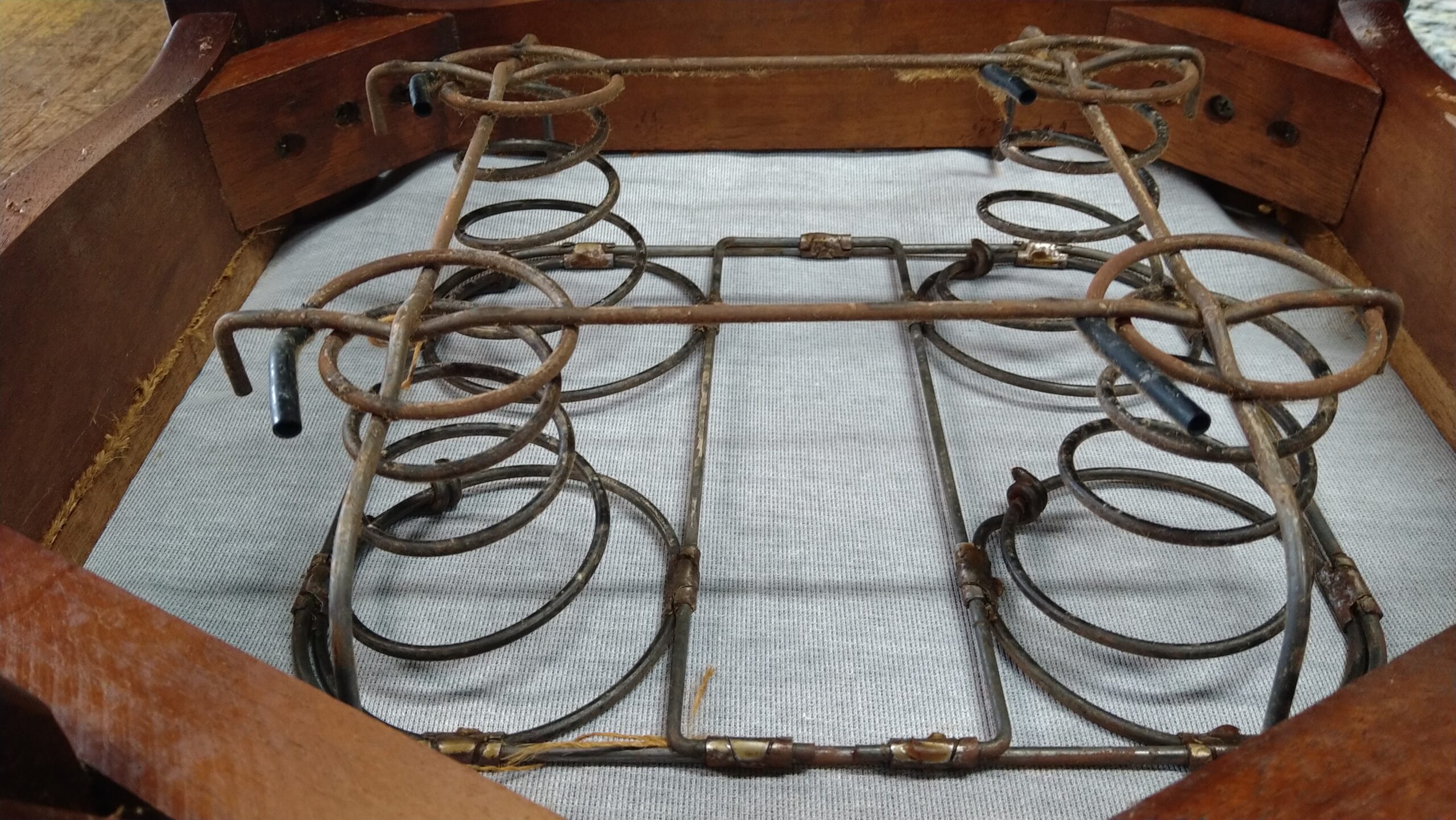 弊社に持ち込まれる、長い間大事にされていた椅子などには私が初めて見る構造のバネが使われていることもあったりします。