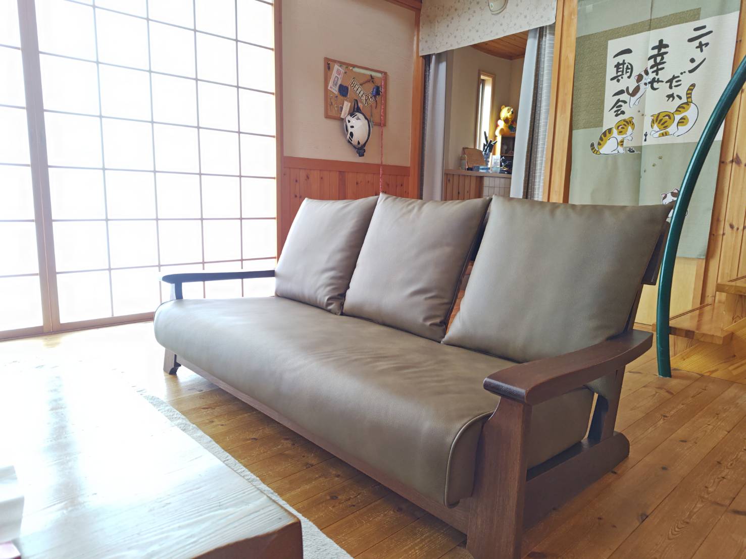 猫ちゃんのひっかきなどは一般的なレザーよりも強く、布のようにすぐに水分が染まない部分が決め手です。