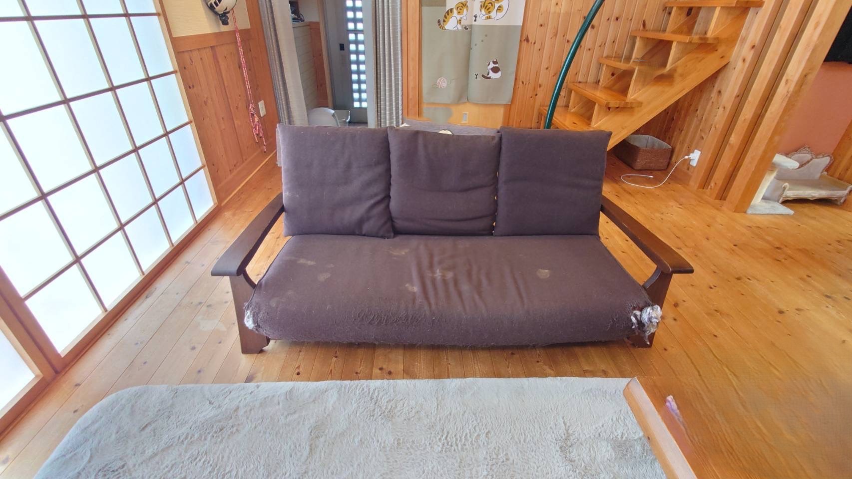 今回は、猫ちゃんを飼っているお客様が使用している、3人掛けソファの着せかえのご紹介です。