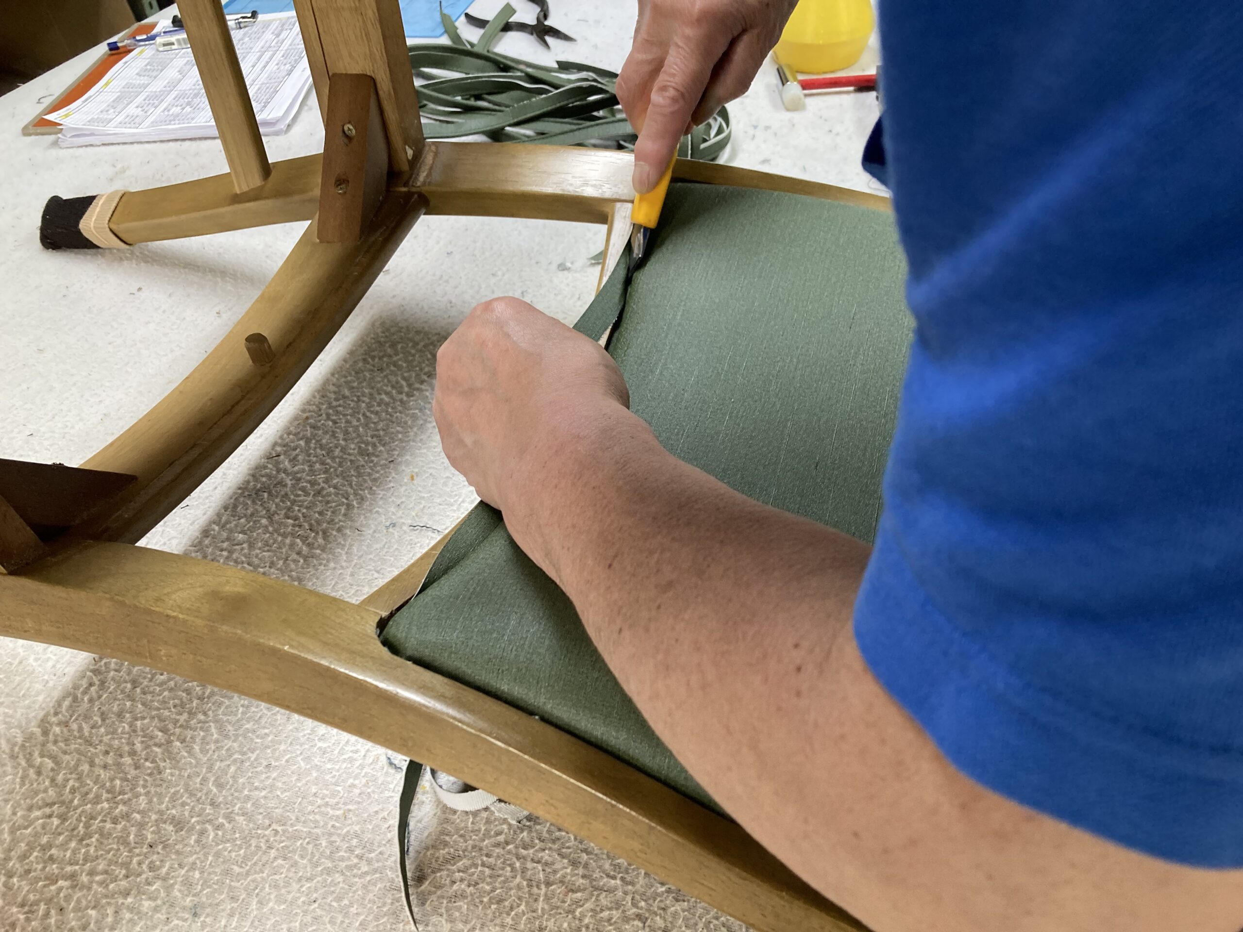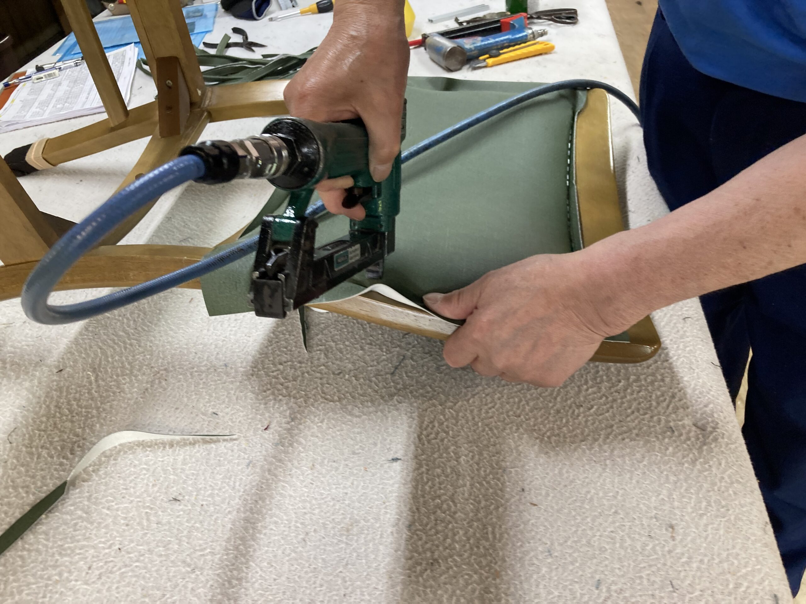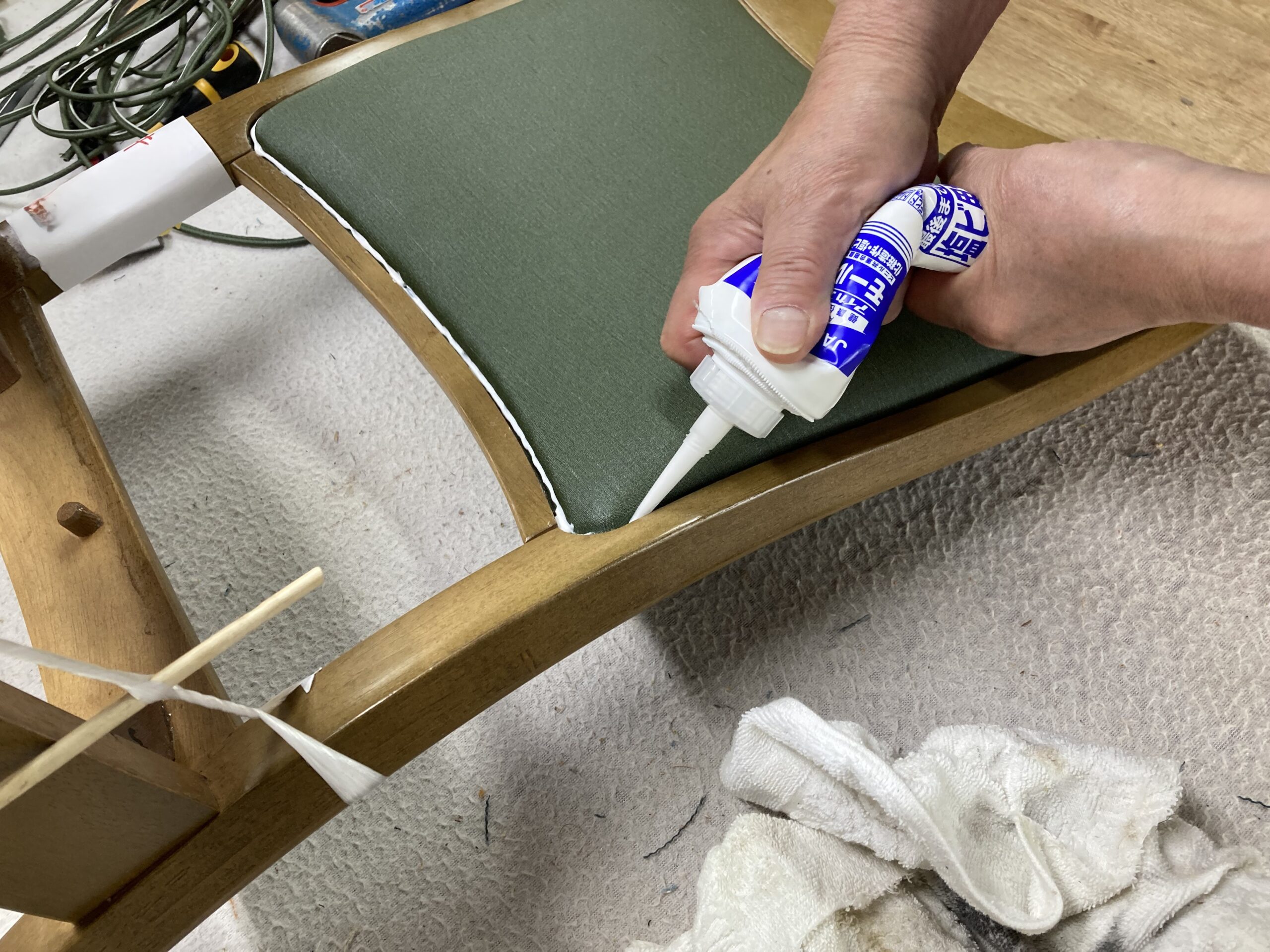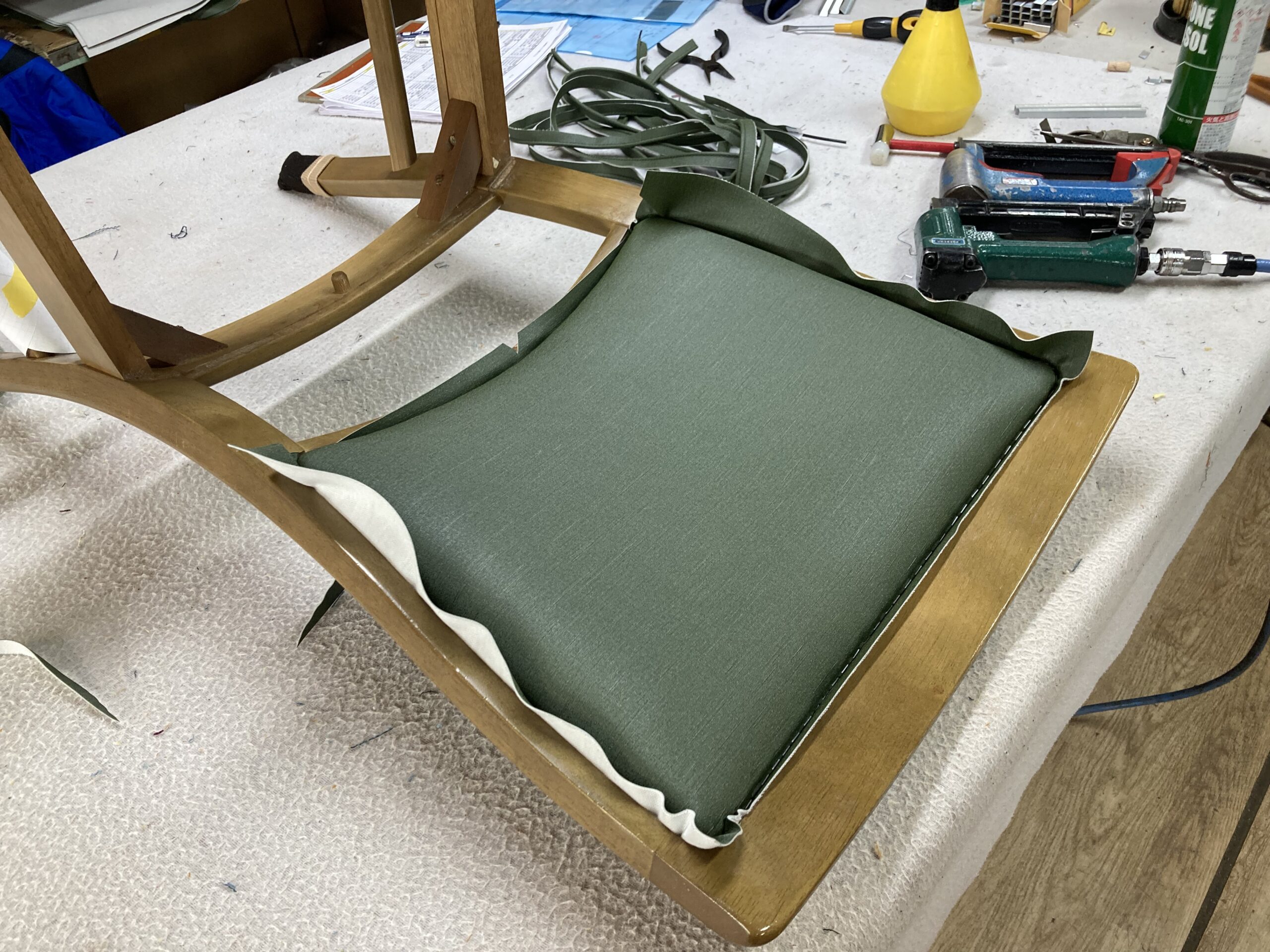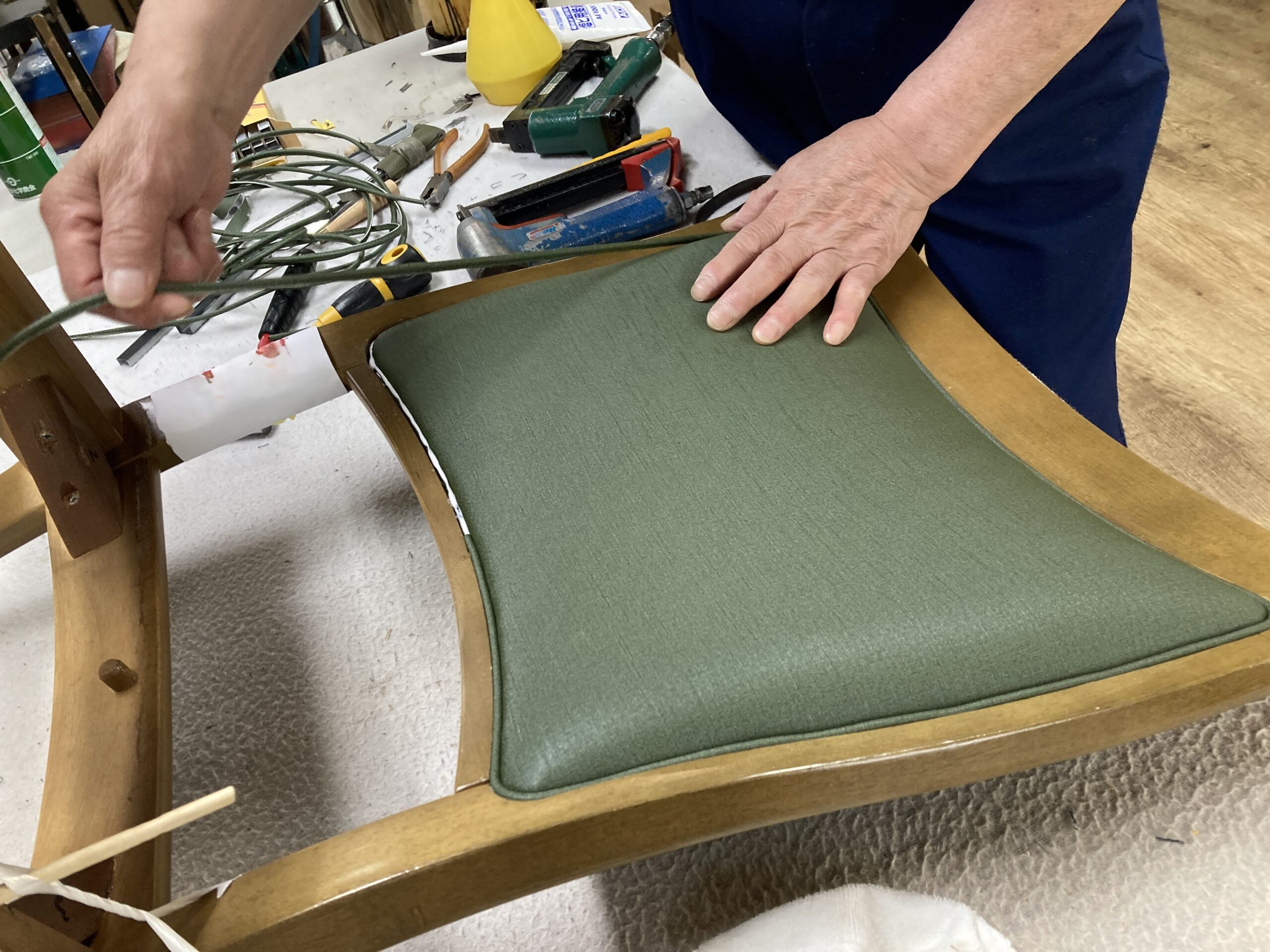 今回はこのような椅子がどのように張られているかを解説したいと思います。