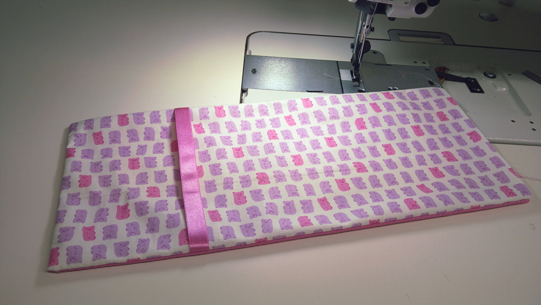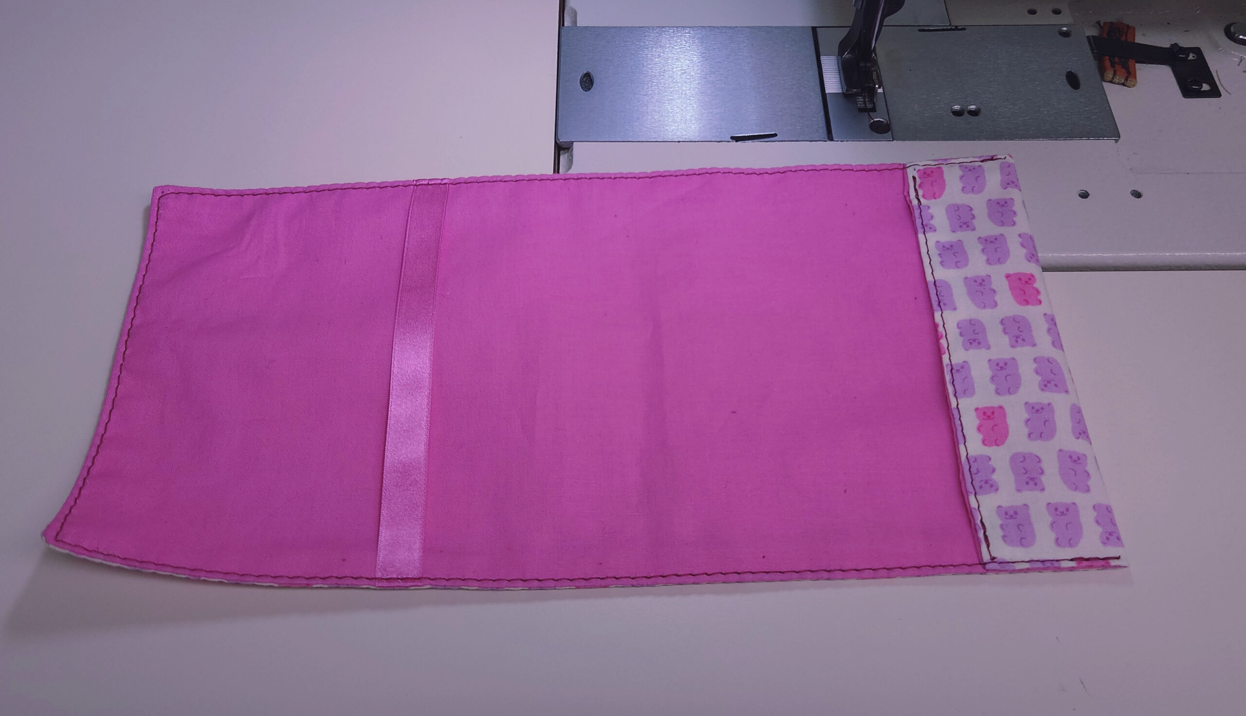 中表に袋状にして縫い合わせたのでひっくり返して開いている口を折り曲げて縫い合わせました。