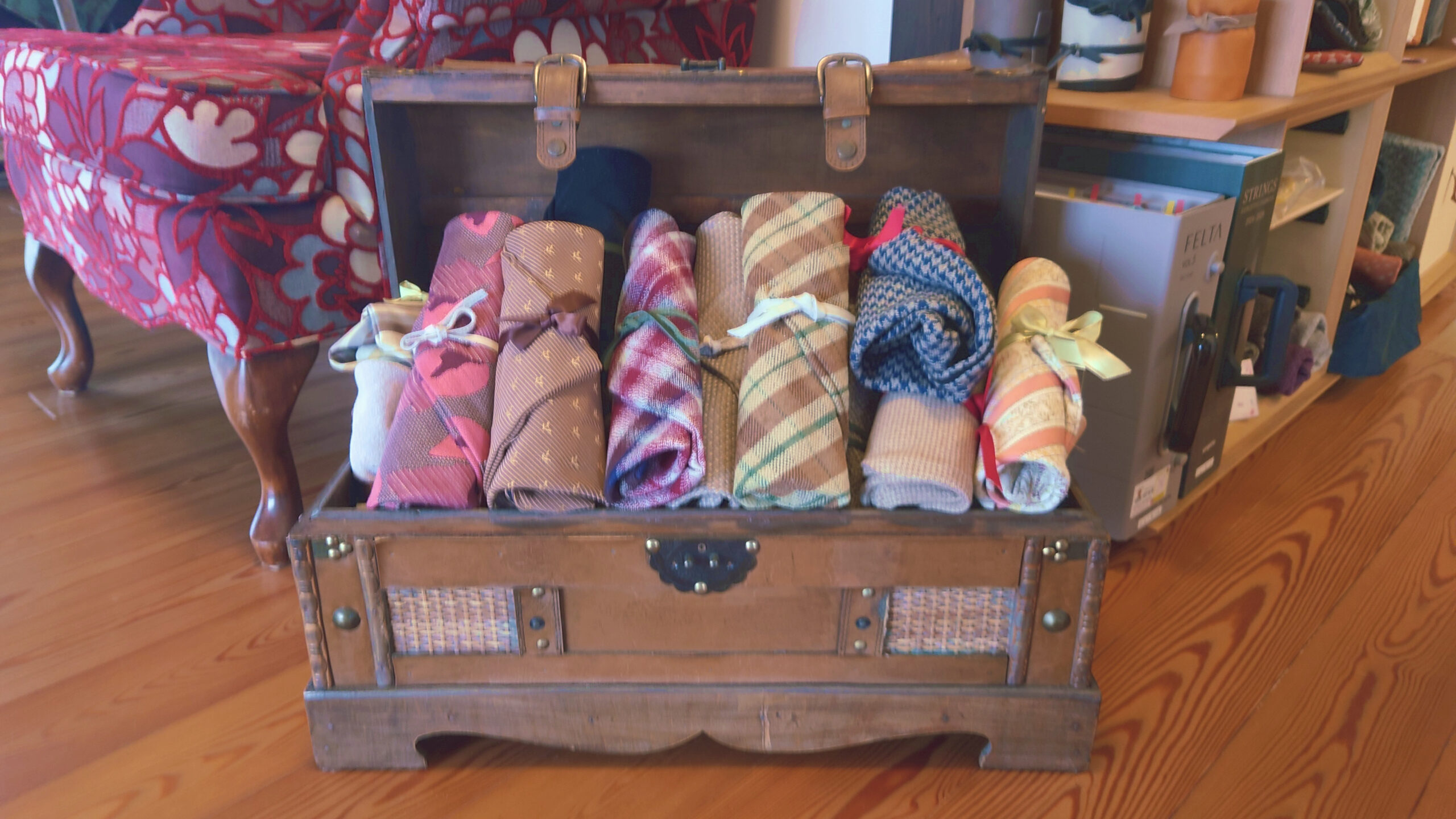 今回は自前の生地を用意しましたが、SOHOには椅子を張り替えた際に出たハギレなども販売しています。
