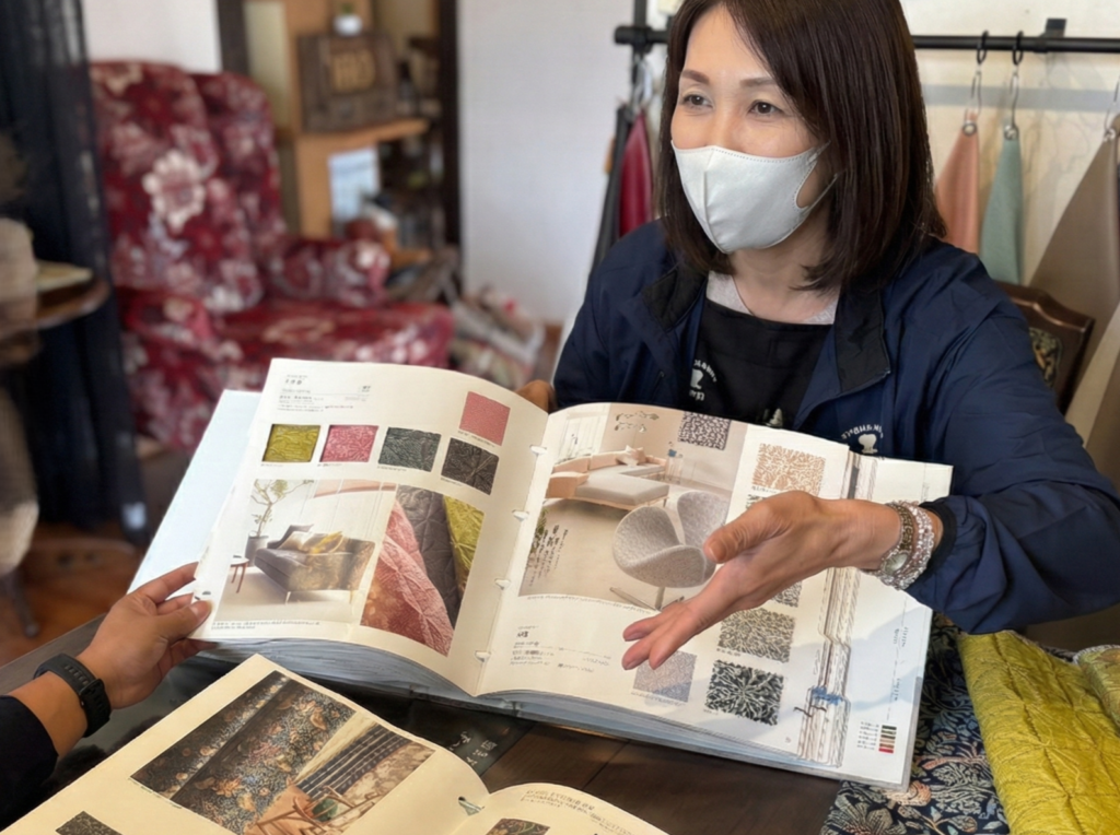「この生地で張り替えたらどうなるかイメージが見てみたい」というご相談にも、