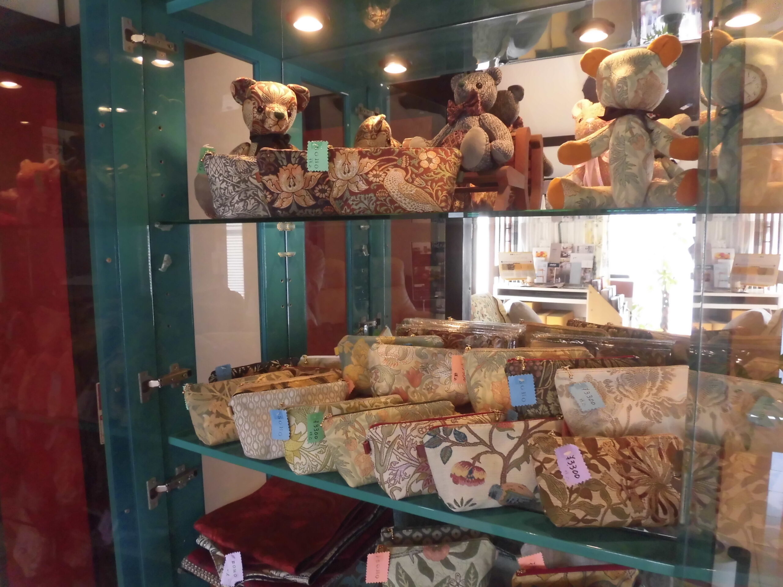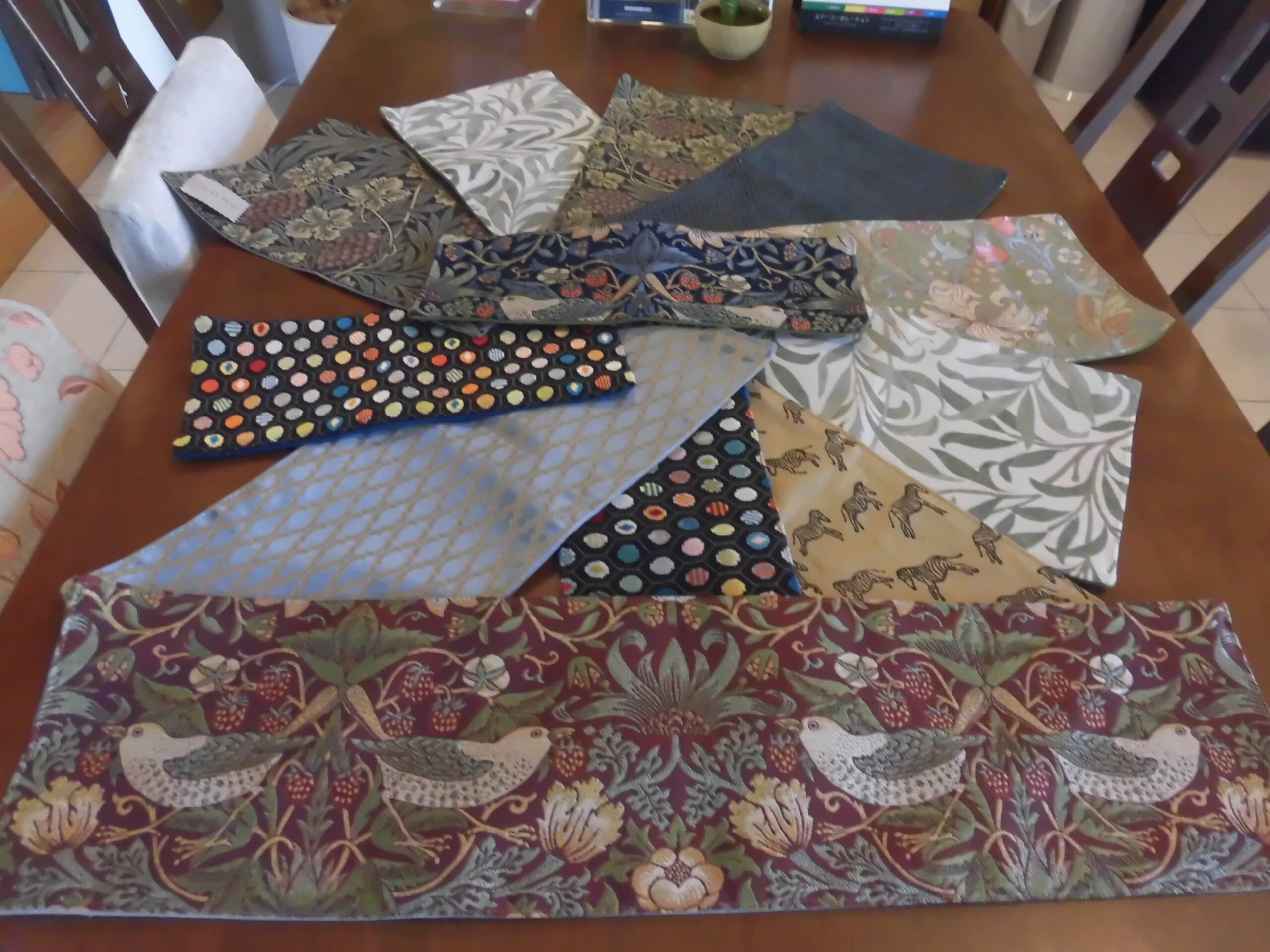 モリスの生地で作製したポーチ。