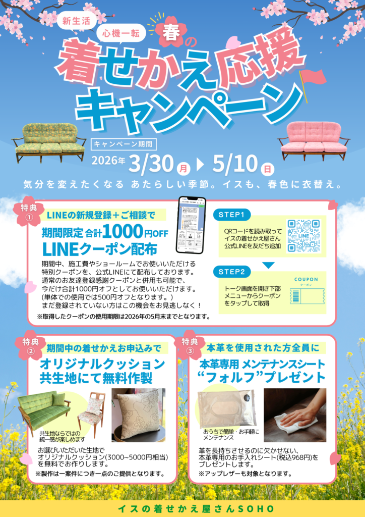 「まだ使えるから」「急ぎではないから」と後回しになっていたイスやソファも、この機会にぜひご相談ください。