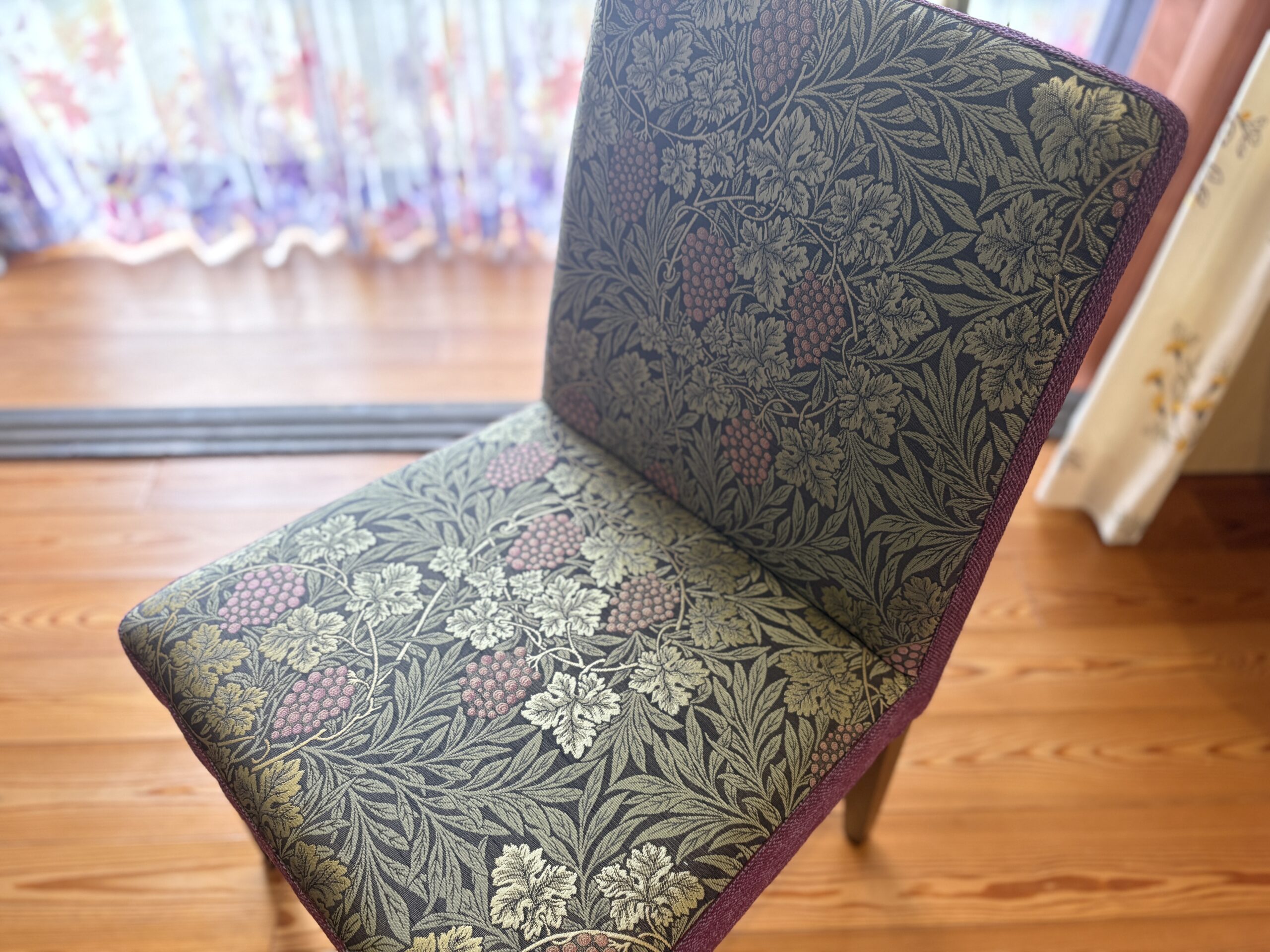 張地でお選びいただいたのは、奥様のお好きなモリスデザインから、「川島織物」の「バイン」と、深みのある紫の無地の平織り布地。