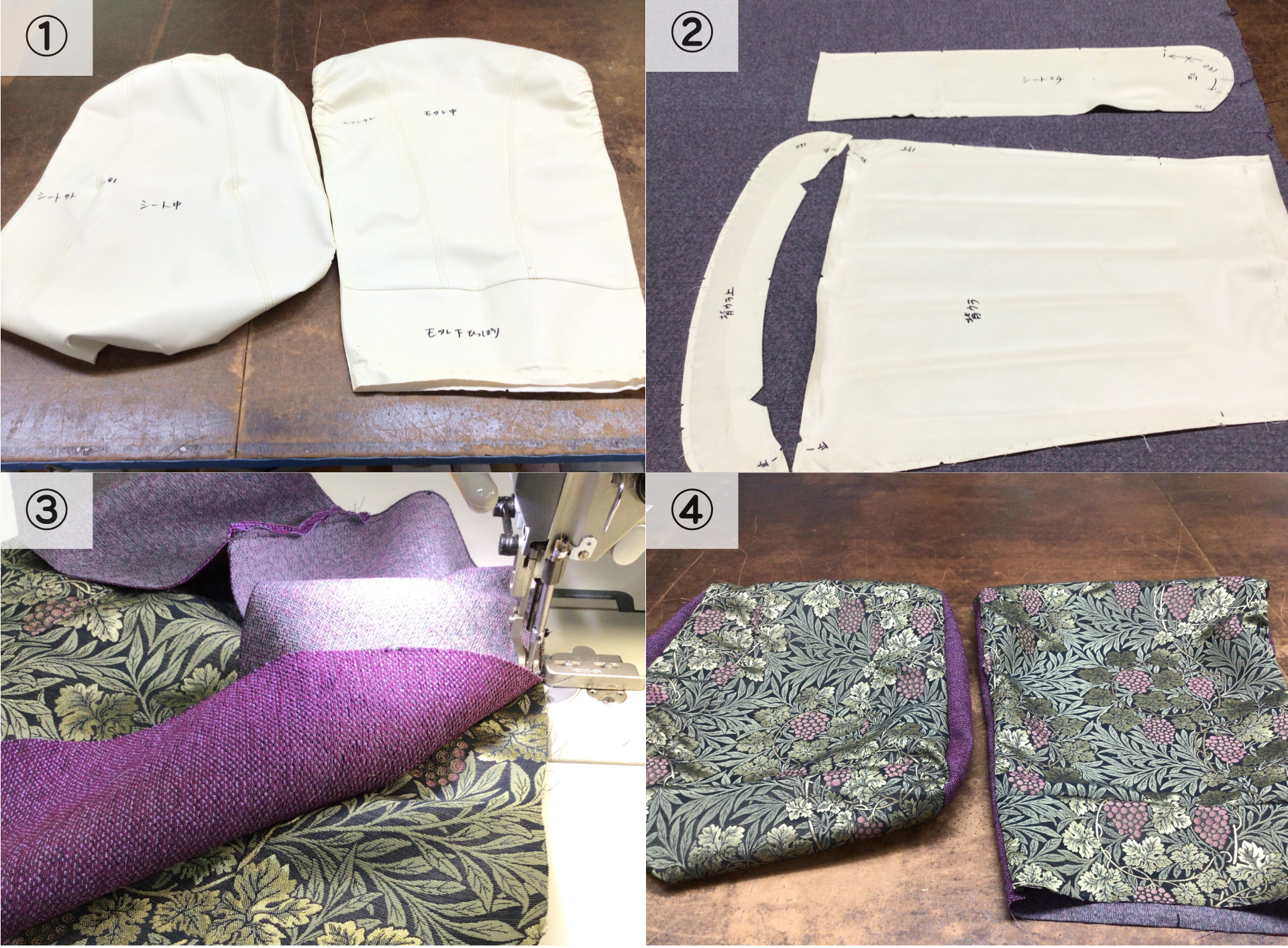 まずは、元の縫製品をすべて取り外します。内部のクッション材も、状態を確認した上で交換。