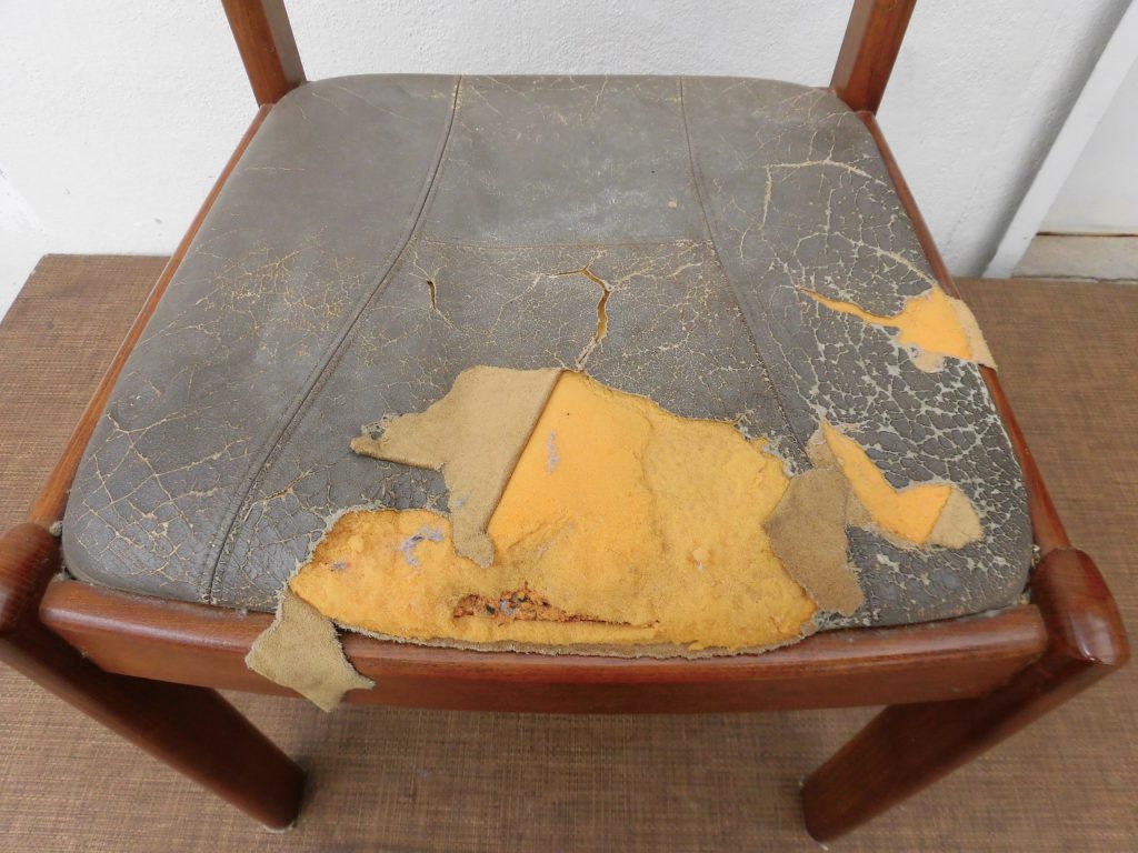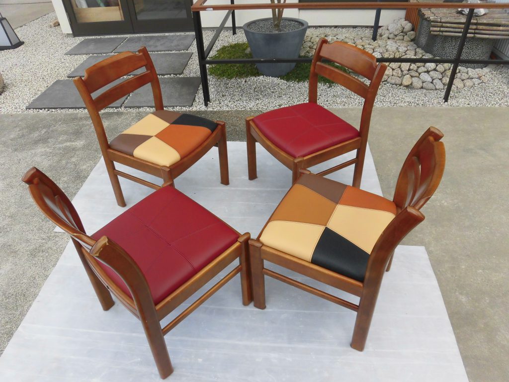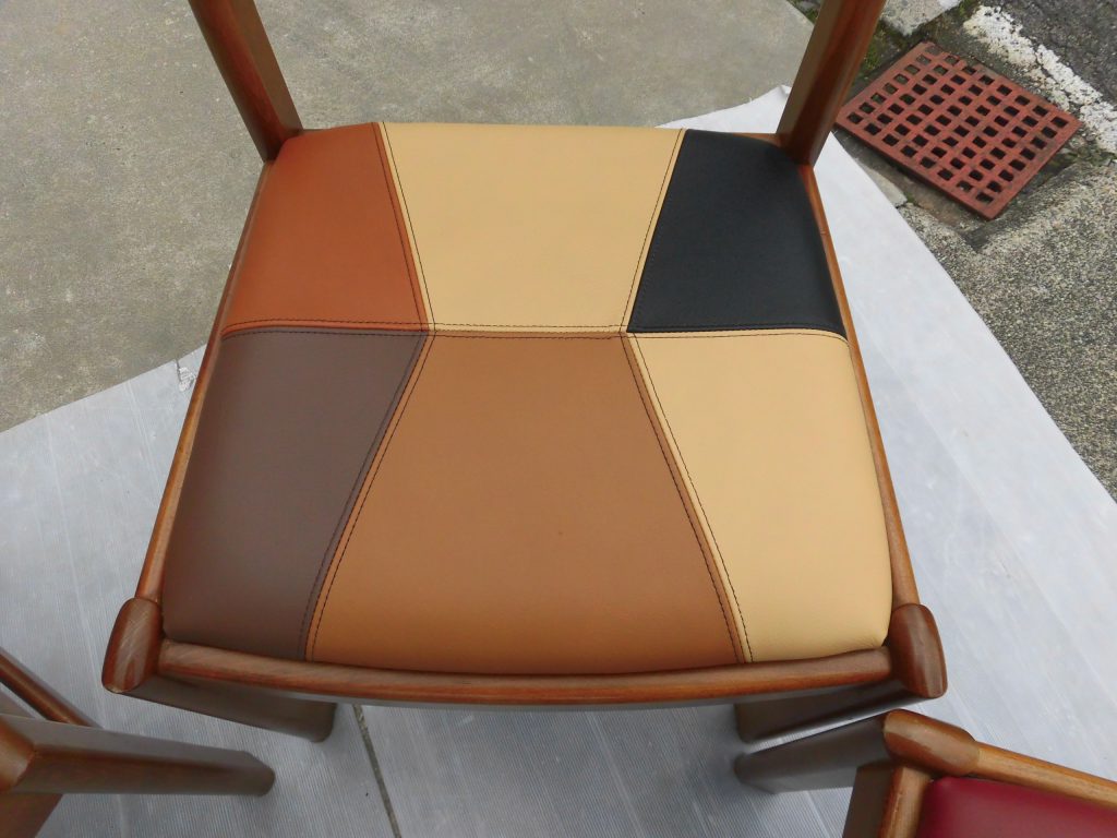 思い出のイスが、アップレザーのツギハギデザインで新しい表情に生まれ変わりました。